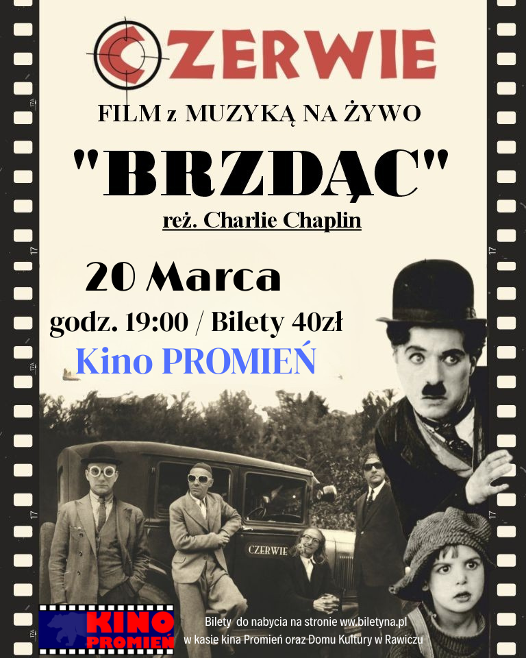 Tym razem historię Chaplina ożywi muzyka na żywo zespołu Czerwie, która nada projekcji nową energię i emocjonalną głębię ![]()
